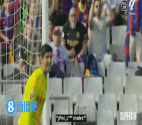 下半场,维尼修斯从德容手里夺过皮球,快开任意球,结果直接传给了亚马尔。随后亚马尔禁区前打出一脚极具威胁的远射,库尔图瓦扑救之后,挥拳怒吼维尼修斯“狗娘养的!”(puta madre)