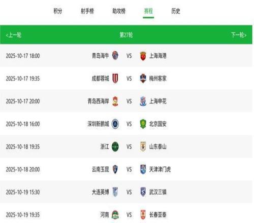 中超第27轮赛程,18日、19日的比赛,央视五套转播苏超,中超放在其余频道直播。