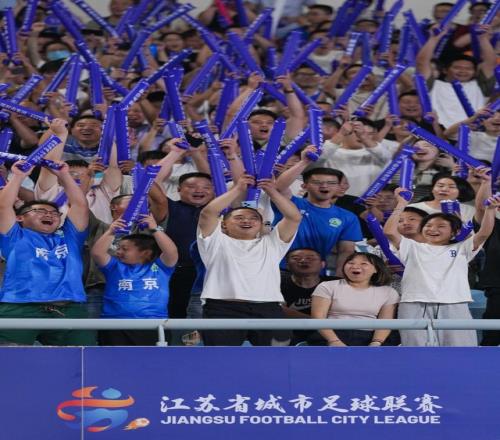 10月4日,球迷在现场为球员加油助威。 当日,在江苏南京举行的2025江苏省城市足球联赛(“苏超”)四分之一决赛中,南京队主场与连云港队在常规时间1比1战平,通过点球大战,南京队以5比3的总比分战胜连云港队,晋级半决赛。 新华社记者 李博 摄