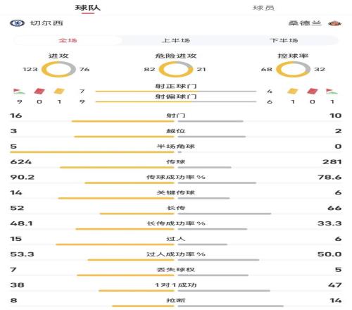 本场比赛,切尔西在第4分钟就取得梦幻开局,但黑猫在第22分钟由伊西多尔扳平。伤停补时第93分钟,塔尔比破门绝杀切尔西。蓝军全场关键数据占优,但还是主场吞下苦果。