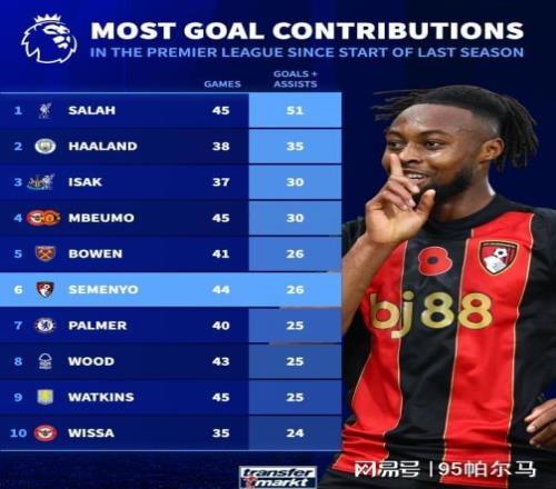 此一时彼一时,完美演绎个人英雄主义的塞梅尼奥身价水涨船高,据悉,伯恩茅斯放人的前提条件是8000万镑的转会费。