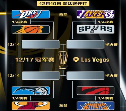 北京时间11月29日,NBA杯小组赛全部结束,八强对阵随之出炉,西部对阵雷霆vs太阳、湖人vs马刺,东部对阵魔术vs热火、猛龙vs尼克斯。西部前六仅掘金与火箭无缘八强,上届冠军雄鹿也无缘八强。