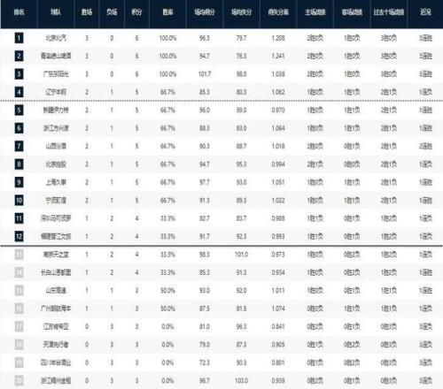 CBA联赛已经打完了第三轮,有的球队的表现非常不错,取得了三战全胜的战绩,比如北京男篮、青岛男篮和广东男篮;有的球队的表现超乎了球迷预期,比如阵容弱化明显的辽宁男篮,以及前几个赛季的弱旅宁波男篮;还有的球队的表现比较糟糕,比如一直都是CBA劲旅的浙江男篮。打完三轮比赛后,积分榜的情况也出现了不小的变化,接下来详细看一下。