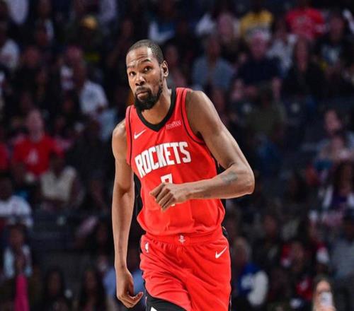 除此之外,火箭队还有一个更大的问题,那就是被公认为是篮球史上最伟大的得分手之一的超级巨星凯文-杜兰特居然缺少出手机会。这位现年37岁的老将自从加盟火箭队以来,虽然进攻数据有所下降,从上个赛季的26.6分下降至本赛季的25.2分,但依然效率极高。他本赛季的投篮命中率为50.9%,三分球命中率为42.9%,罚球命中率为89.6%,完全有机会在职业生涯中第三次入选50/40/90俱乐部。