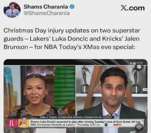 前两天湖人88-103不敌快船同城德比,东契奇在此役遭遇左小腿挫伤,从而缺席了湖人108-132太阳的比赛,却在接下来的圣诞大战如上所述选择火线复出。