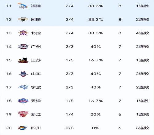 随着天津队拿下首场胜利之后,联盟全败球队仅剩四川队,这支昔日总冠军也是唯一一支开局6连败的球队,排名从倒数第二重回倒数第一。