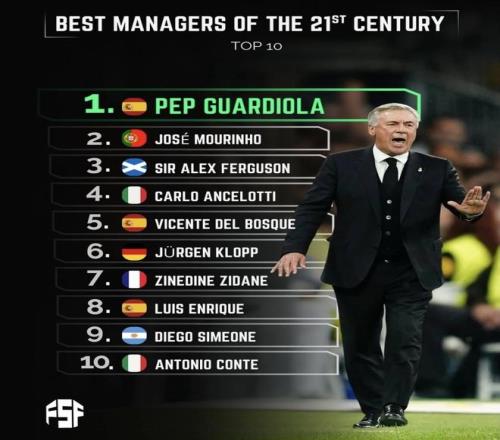 21世纪十大主教练榜单发布!安切洛蒂次不如穆里尼奥温格落榜_24直播网