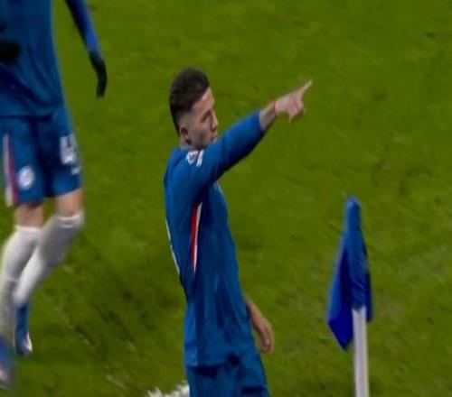 比赛第23分钟,恩佐接加纳乔助攻破门,帮助切尔西2-1反超比分,这位阿根廷中场打入他在英超的第14粒进球。