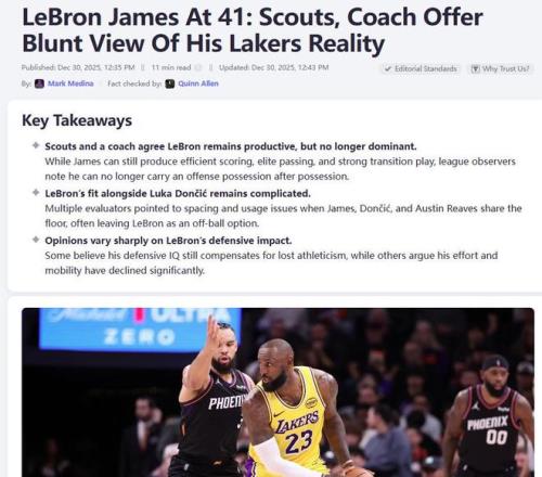 东契奇明显复胖+41岁詹姆斯老迈不堪!湖人最大的短板防守问题彻底藏不住了,美媒《heavy》也果断建议湖人3换1完成针对性补强。