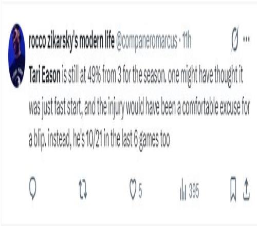 火箭记者Bradeaux继续写道:本赛季塔里-伊森的三分表现竟然跟雷阿伦如出一辙,这让我意想不到。