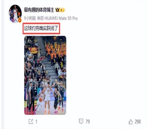 还有一个冤枉广东队的错判是,约克的绝杀球明明是踩边线了,但裁判并未吹判,反而帮助约克绝杀了广东队。赛后媒体人“最有趣的体育博主”晒出了约克踩线的视频,他说“这球约克确实踩线了”。当时杜锋对这个漏判非常不满,不断地与裁判交涉和理论,但是裁判并不理会杜锋,也不知有没有看了回放,若是看了回放那就是一个漏判。