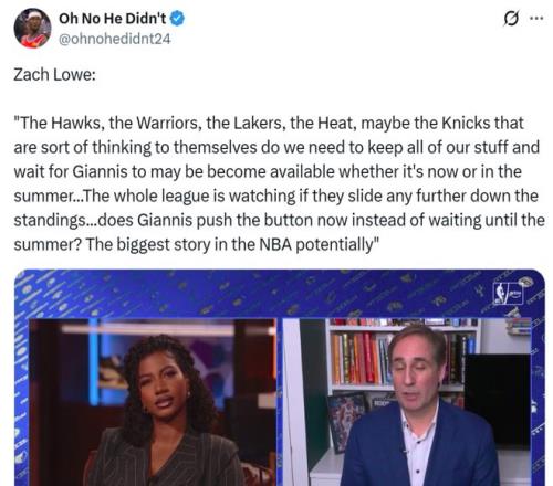 字母哥再度入选榜单,主要是因为名记Zach Lowe曝出、纽约、勇士、湖人、等一众球队都在考虑是否保留全部筹码以等待得到字母哥的潜在交易机会。